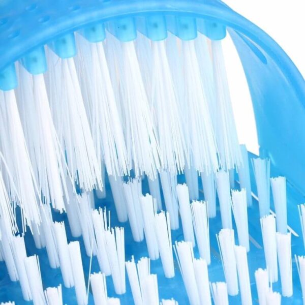 First of all, move your foot back and forth to clean the toes, arch, heel, sides and top at the same time. You don’t have to worry about slipping and falling while cleaning your feet.