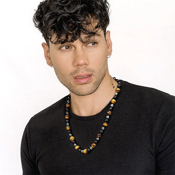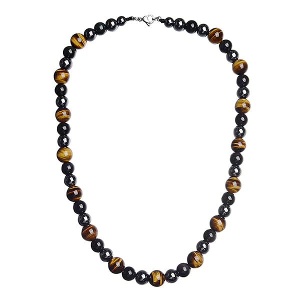FORTIS Chalcedony Beaded Necklace replenishes your strength and stamina while supporting your weight-loss goals. Carefully curated with natural Tiger Eye, Garent, and Arfvedsonite, ensuring durability and longevity.