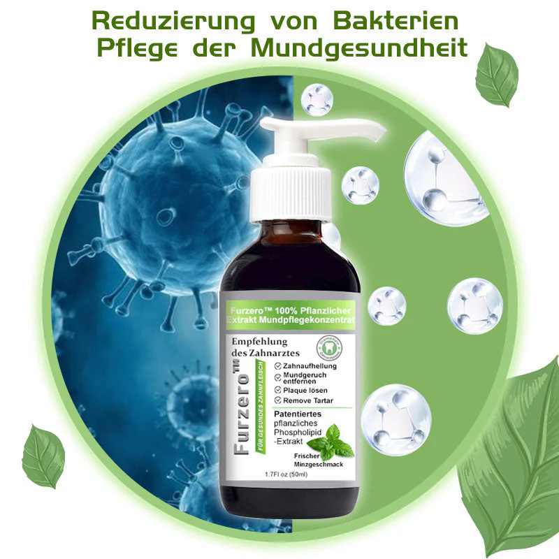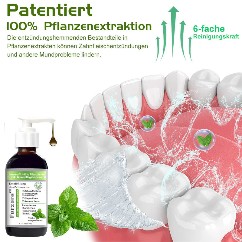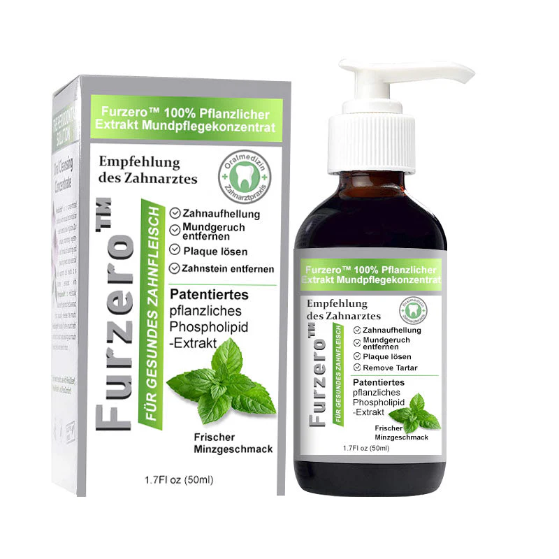 Furzero™ 100% Pflanzlicher Extrakt Mundpflegekonzentrat , das Bakterien beseitigt, die Mundgeruch, Zahnstein, Mandelsteine, Karies und andere Probleme verursachen können. Es bekämpft effektiv Mundgeruch und sorgt mit hinzugefügtem Pfefferminzalkohol für frischen Atem.