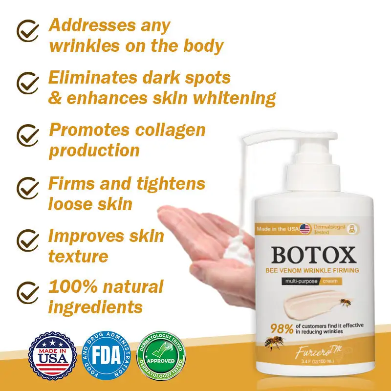 Dive into the science behind Furzero™ Botox Bee Venom Wrinkle Firming Multi-Purpose Cream, a meticulously crafted formula that blends cutting-edge ingredients for unparalleled skin transformation.