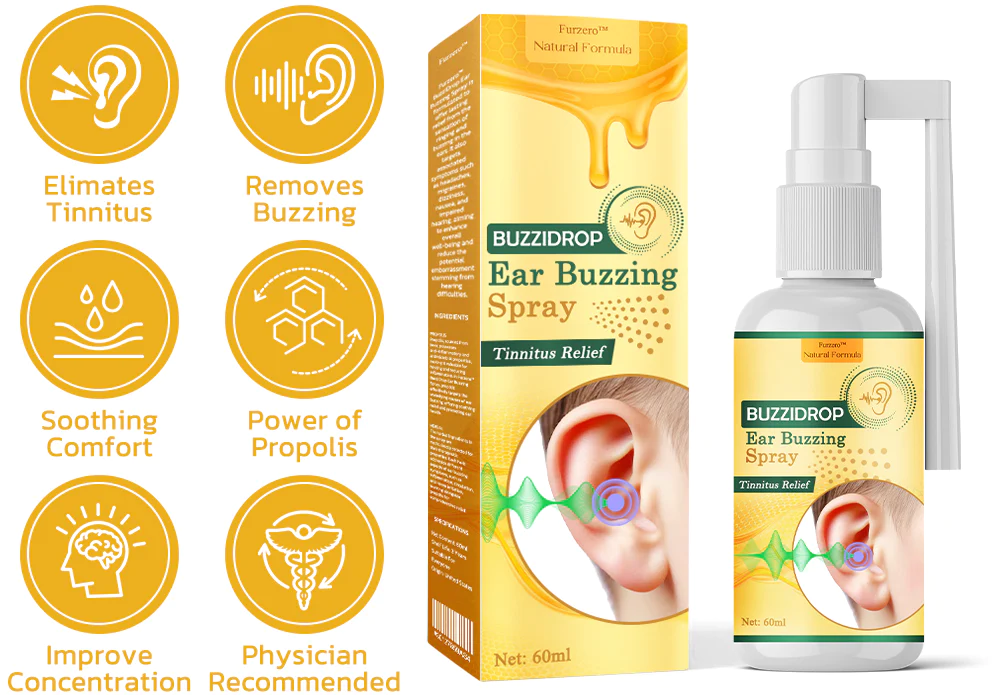Furzero™ BuzziDrop Ear Buzzing Spray works by penetrating the ear canal to specifically address symptoms linked with ear tinnitus, such as ringing, buzzing, tapping, and earache. With the assistance of Furzero™ BuzziDrop Ear Buzzing Spray, individuals can say goodbye to bothersome ear sounds and embrace a soothing sense of comfort.