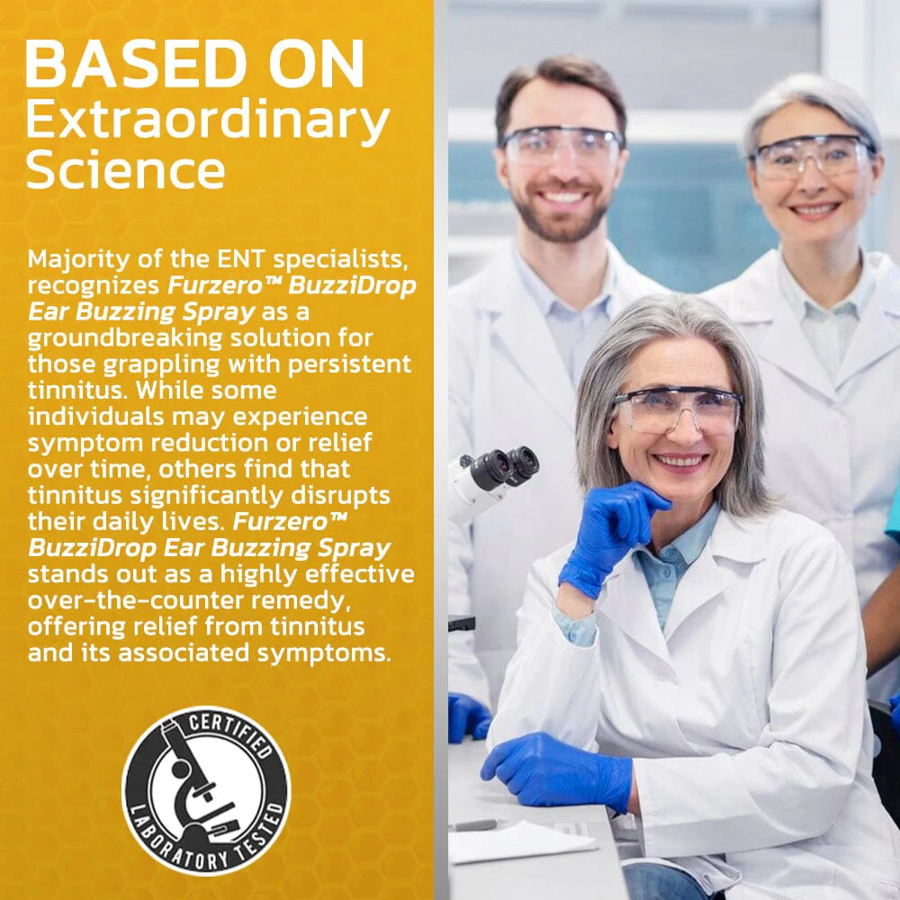 Dr. Camella Tucker, M.D., an otolaryngologist specializing in Ear, Nose, and Throat at the Institute of Auditory Health in California, along with several other ENT specialists, recognizes Furzero™ BuzziDrop Ear Buzzing Spray as a groundbreaking solution for those grappling with persistent tinnitus. While some individuals may experience symptom reduction or relief over time, others find that tinnitus significantly disrupts their daily lives. Furzero™ BuzziDrop Ear Buzzing Spray stands out as a highly effective over-the-counter remedy, offering relief from tinnitus and its associated symptoms.
