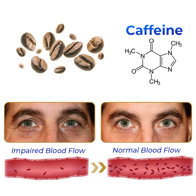 The natural stimulant caffeine is present in coffee, tea, and skincare products. Caffeine constricts blood vessels. Dilated blood vessels or poor circulation may cause blood to collect in the delicate skin around the eyes, causing under-eye bags. In order to lessen the visibility of dark pigments and minimise the appearance of dark circles under the eyes, the vasoconstrictive impact of caffeine helps diminish the appearance of dark circles.