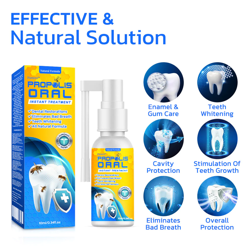 Transform Your Smile from Home: Experience the Power of Furzero™ Propolis Oral Instant Treatment Spray for Gum & Teeth Health Restoration, Whitening & Bad Breath Relief