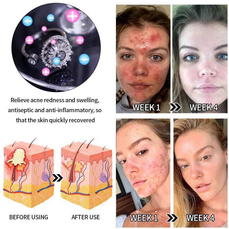 Titanium has anti-inflammatory properties that have a soothing and alleviating effect. It facilitates pain and inflammation relief, and the negative ions generated by titanium are transported throughout the body by enhancing the magnetic field, providing anti-inflammatory and pain-relieving effects. It targets deeper bacteria, prevents bacterial growth, reduces inflammation, and effectively alleviates acne redness and swelling.