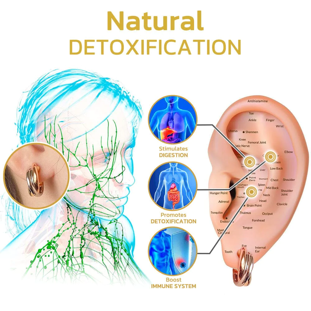 ✔ Activate acupressure points and meridians around the ear, assisting in lymphatic drainage, detoxification, and enhanced circulation.