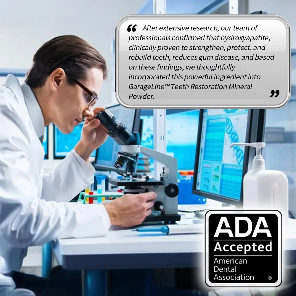 GarageLine™ Teeth Restoration Mineral Powder utilizes the natural healing properties of mineral elements like hydroxyapatite, combined with potent herbal ingredients. These components collaborate to enhance gum health and strengthen tooth enamel, ensuring comprehensive oral care. Additionally, the formula includes essential vitamins that further support dental health, providing a holistic approach to maintaining a radiant smile.