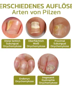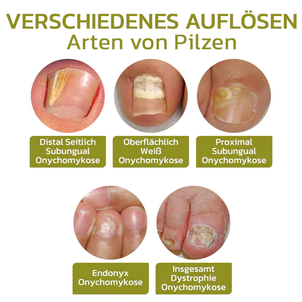 GFOUK™️ Intensives Serum für Nagelwachstum und stärkung enthält antimykotische Wirkstoffe, die den für die Onychomykose verantwortlichen Pilz beseitigen und seine Rückkehr verhindern. Indem es das Pilzwachstum hemmt und die Nagelgesundheit fördert, stärkt es den Schutz vor zukünftigen Infektionen. Dieses Serum wirkt effektiv gegen verschiedene Arten von Pilzen, einschließlich distaler subungualer Onychomykose, oberflächlicher weißer Onychomykose, proximaler subungualer Onychomykose und endonymer Onychomykose.