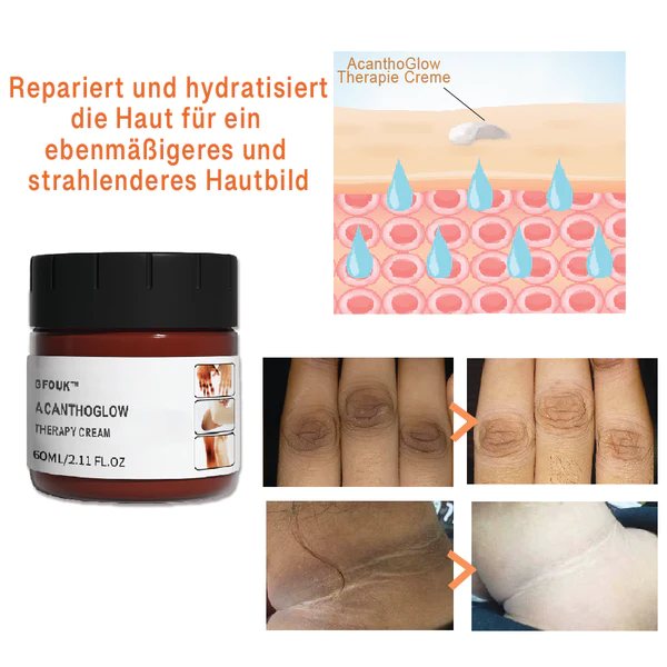 GFOUK™ AcanthoGlow Therapie Creme wurde speziell entwickelt, um Hyperpigmentierung zu lindern, die durch Acanthosis Nigricans verursacht wird, eine Hauterkrankung, die dunkle und samtige Verfärbungen in Hautfalten und Fältchen verursacht. Diese Creme enthält Vitamin C, das nicht nur zur Verringerung dunkler Flecken beiträgt, sondern auch die Blutzirkulation fördert und so zur allgemeinen Gesundheit beiträgt und das Ziel der Gewichtsabnahme unterstützt.