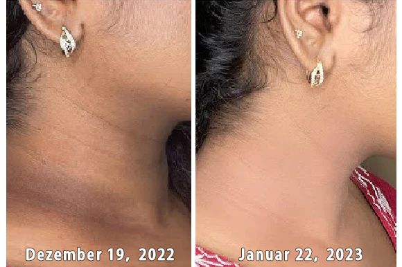 Die GFOUK™ AcanthoGlow Therapie Creme hat eine doppelte Funktion: Sie peelt die dunkle Haut und versorgt sie mit Feuchtigkeit. Durch die Beseitigung der Ansammlung von abgestorbenen Hautzellen, die zu einem ungleichmäßigen und glanzlosen Hautton beitragen können, kann das Peeling auch dunkle Stellen aufhellen. Diese Creme auf Ölbasis löst die Klebeverbindungen zwischen den abgestorbenen Hautzellen auf, so dass diese sanft und mühelos entfernt werden können. Bei Menschen mit Acanthosis Nigricans kann die betroffene Haut zu Juckreiz, Reizungen und Entzündungen neigen. Die Feuchtigkeitspflege mit dieser Creme kann diese Symptome lindern, indem sie eine Schutzbarriere auf der Hautoberfläche bildet und die Reibung verringert.