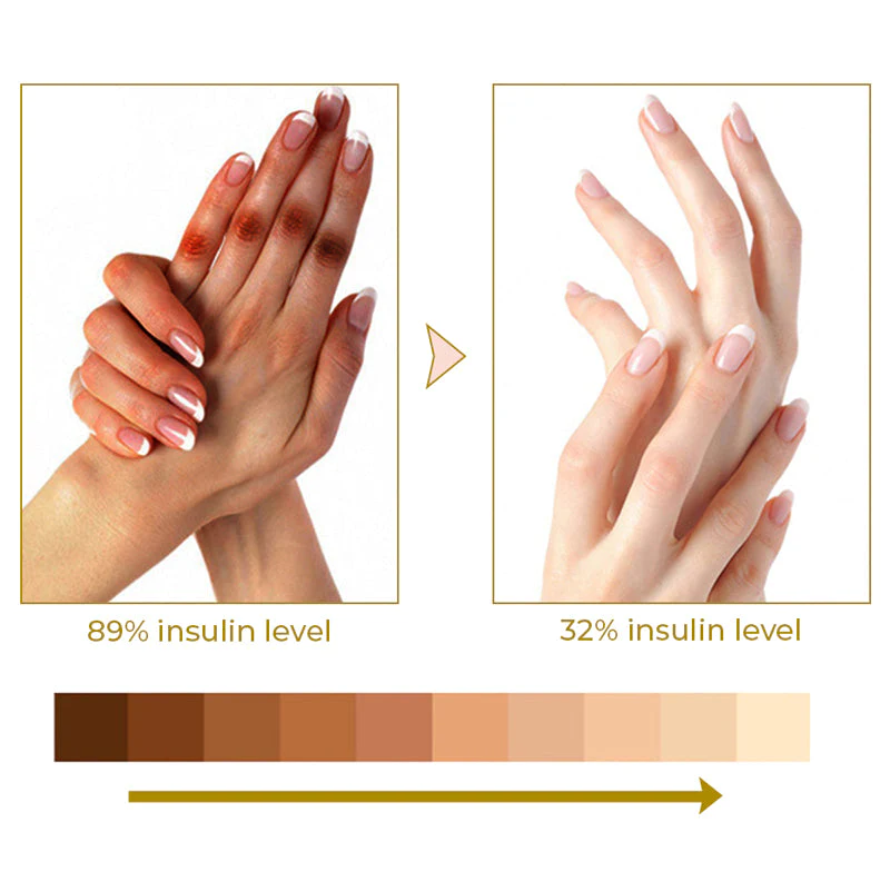 GFOUK™ Acanthosis Nigricans Peeling Oil successfully treats the fundamental cause of increased melanin, which leads to deeper skin pigmentation, by increasing insulin clearance from the blood. The oil increases the release of glucose that has been trapped there, which can help to flush insulin from the circulation more quickly.