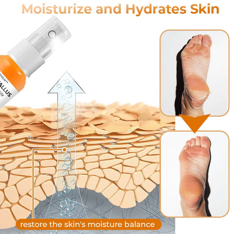 GFOUK™ Foot Callus Removal Spray has the ability to break down or dissolve keratin, the protein that forms the tough outer layer of the callus. It works by penetrating the layers of the callused skin and disrupting the bonds between the dead skin cells, gradually softening and loosening the callus.