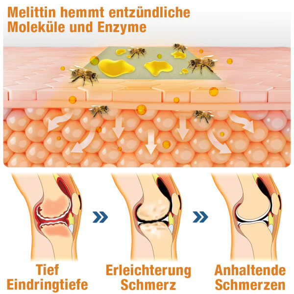 Bienengifttherapie bietet einen einzigartigen Ansatz zur Linderung von Arthritis. Die wichtigsten Verbindungen im Bienengift, darunter Melittin, kann die Haut durchdringen und Reaktionen im Immun- und Nervensystem auslösen. Dies führt zu einer schmerzlindernden und entzündungshemmenden Wirkung. Zusätzlich wird die Das Gift enthält Melatonin und Enzyme, die die Blutzirkulation, die Sauerstoff- und Nährstoffversorgung verbessern und bei der Reparatur von beschädigtem Gelenkgewebe helfen. Durch topische Anwendung einer extrahierten Bienengiftlösung, es lindert wirksam die durch Arthritis verursachten Schmerzen, Schwellungen und Entzündungen und bietet langfristige Linderung.