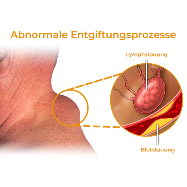 In Fällen von Lymphstauung gibt es ein Tendenz zur Ansammlung von Giftstoffen und überschüssigem Fettgewebe am Haaransatz, was zur Entstehung eines Büffelbuckel. Außerdem, diese Blockade behindert den Blutkreislauf, verlangsamt den Stoffwechsel im Körper, behindert eine wirksame Entgiftung, löst Ödeme aus, und trägt letztlich zu Gewichtszunahme. Zusätzlich, Lymphstau kann dazu beitragen eine eine Reihe anderer physischer Probleme, wie die Bildung von Nebennierentumore und Lungentumoren.