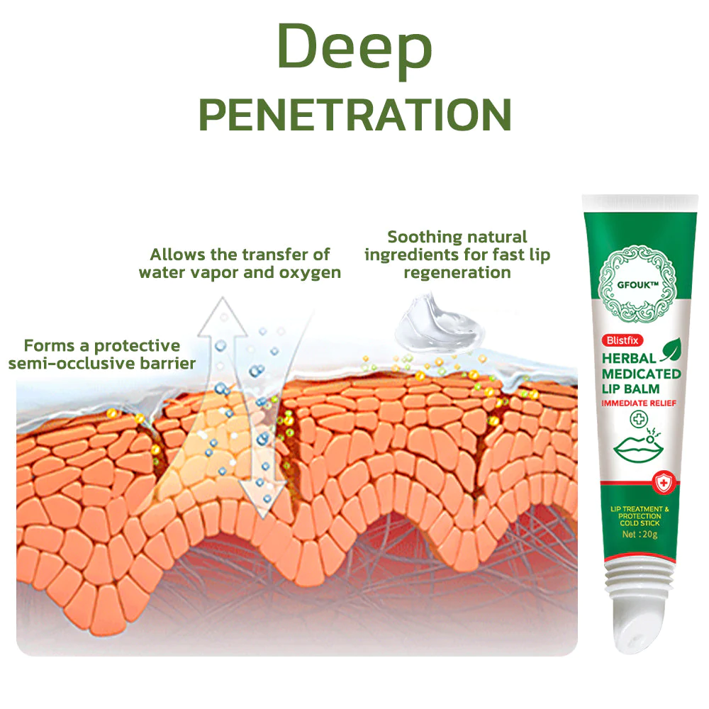 GFOUK™ Blistfix Herbal Medicated Lip Balm works by providing a natural solution to relieve and prevent cold sores, chapped lips, and other lip conditions. The lip balm’s natural moisturizing ingredients help to keep the lips hydrated and prevent dryness and cracking. The antiviral properties can help prevent cold sore outbreaks caused by the herpes simplex virus.