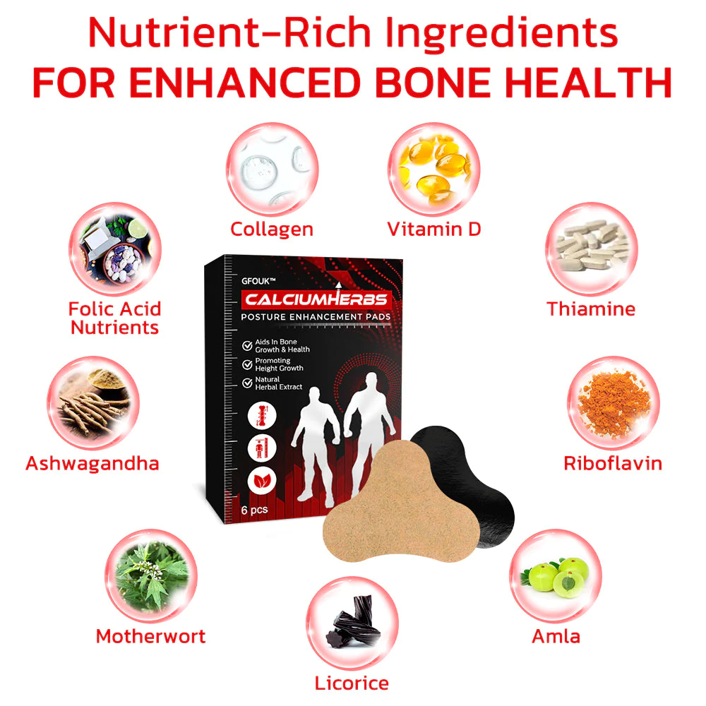 Presenting the GFOUK™ CalciumHerbs Posture Improvement Pads – an innovative remedy formulated to support bone health and boost height potential. Infused with a distinctive combination of natural elements and fortified with calcium, this patch provides specific advantages to encourage optimal bone development and overall skeletal health.