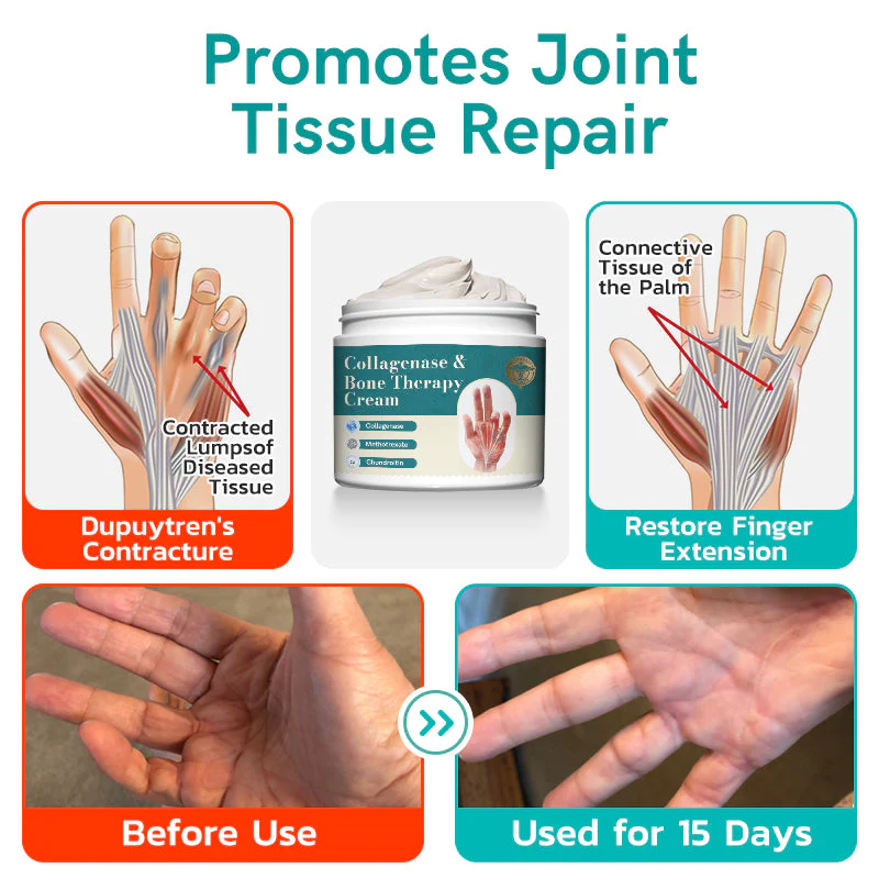 As an orthopedic surgeon, I recommend GFOUK™ Collagenase and Bone Therapy Cream for Dupuytren’s contracture problems. This cream contains active ingredients such as Collagenase, Methotrexate, Chondroitin, Vitamin K2, etc. It helps to relieve joint pain in the hands and legs caused by Dupuytren’s contracture, nourishes the joints and improves joint mobility. In addition, it helps to rebuild and restore joint and bone tissues, reducing the risk and probability of joint deformity and even disability.