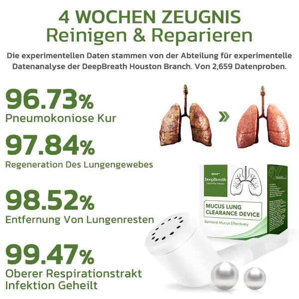 Das Forschungsteam von Dr. Kazzy hat das bahnbrechende GFOUK™ DeepBreath Kräuter-Schleimlöser für die Lunge eingeführt, mit einer innovativen Lösung zur Linderung von Atemwegsproblemen. Dieses Gerät verbessert die Fähigkeit des Atmungssystems, Abfallstoffe und Schleim aus der Lunge zu entfernen, und fördert so die optimale Gesundheit und Funktion der Lunge. Es bietet auch eine positive Ausatmungsdrucktherapie (PEP) und eignet sich daher für Patienten mit schleimproduzierenden Atemwegserkrankungen wie Atelektase, Bronchitis, Bronchiektasen, Emphysem, zystischer Fibrose, chronisch obstruktiver Lungenerkrankung (COPD), Asthma und anderen Erkrankungen, die zu Sekretstau führen.