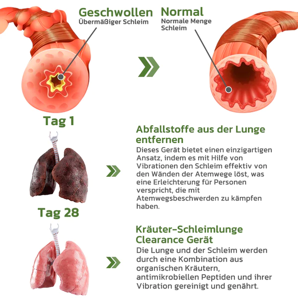 Aufgrund der Die Auswirkungen unserer Arbeits- und Lebensbedingungen sowie ungesunde Lebensgewohnheiten führen dazu, dass die Luft, die wir heute atmen, nicht mehr rein und natürlich ist. Daher atmen wir regelmäßig erhebliche Mengen an Rauch und Staub ein, die sich in unserer Luftröhre und Lunge ansammeln können. Als Reaktion auf diese Fremdstoffe produziert unser Körper überschüssige Körperflüssigkeiten, was zu einer Ansammlung von Schleim in der Lunge führt. Gelingt es nicht, diesen Schleim und die Fremdkörper effizient aus dem Körper zu entfernen, kann dies zum Ausbruch der genannten Krankheiten beitragen und in schweren Fällen lebensbedrohlich sein.