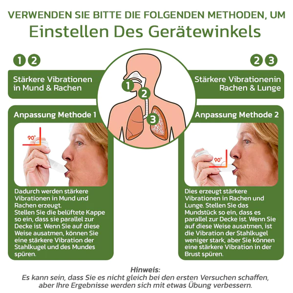 3. Erlauben Sie diesen Vibrationen, den Schleim effektiv von den Wänden der Atemwege zu lösen.