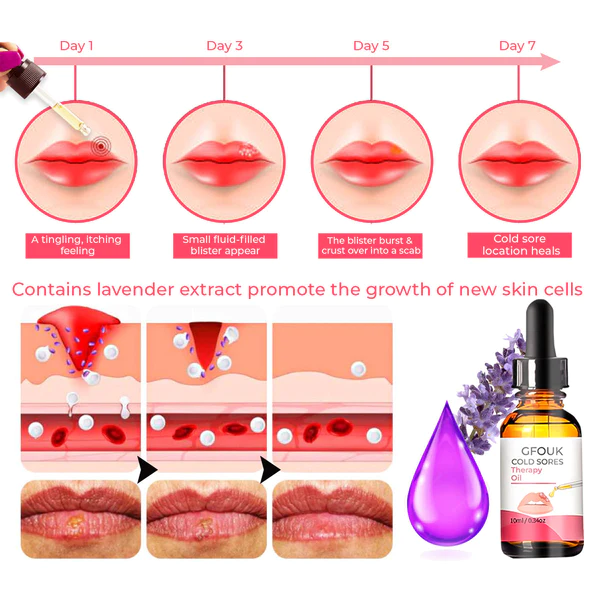 Der Grund für die Entwicklung von GFOUK™ Cold Sores Therapy Oil ist der Lippenherpes oder die Fieberblase, die in der Regel durch engen Kontakt mit jemandem übertragen wird, der einen aktiven Lippenherpes hat. Mit der Verwendung dieses Produkts können Sie frühe Symptome verhindern und die Ausbreitung verhindern. Es kann das Virus bekämpfen und die Entzündung verringern, was zur Linderung der Symptome und zur Beschleunigung des Heilungsprozesses beitragen kann.