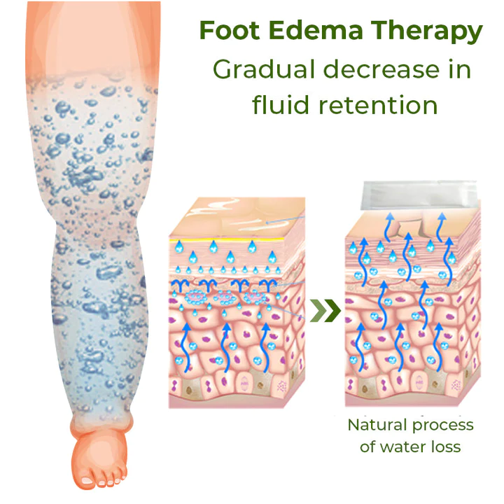 Edema often occurs due to fluid retention in tissues, and stimulating these tissues could help facilitate the movement of excess fluids. The improved blood flow resulting from this stimulation might aid in carrying away accumulated fluids, leading to reduced swelling. By using the GFOUK™ Foot Edema Therapy Patch over time, the gradual reduction of moisture might indicate a gradual decrease in fluid retention, potentially resulting in reduced edema.