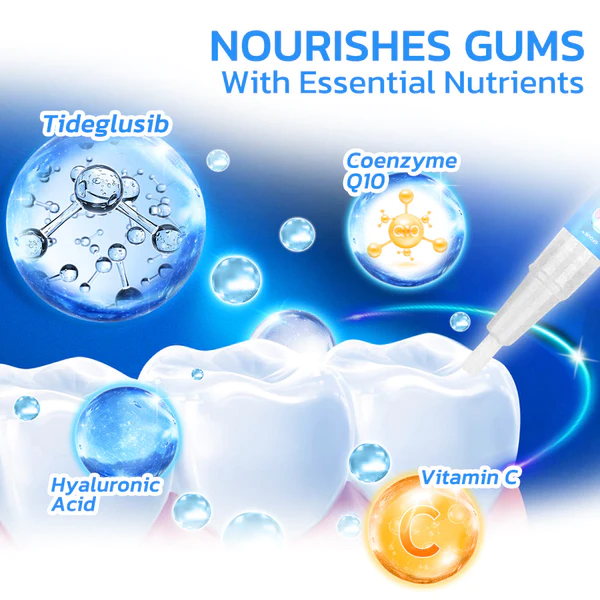 Utilize GFOUK™ Gum Instant Treatment Gel to directly administer a wealth of vital nutrients to your gum tissue. This efficient delivery ensures rapid absorption, leaving no barriers between you and your well-nourished gums. Upon application, the gel yields instant results by supplying the essential building blocks needed for the growth and repair of healthy gum tissue.