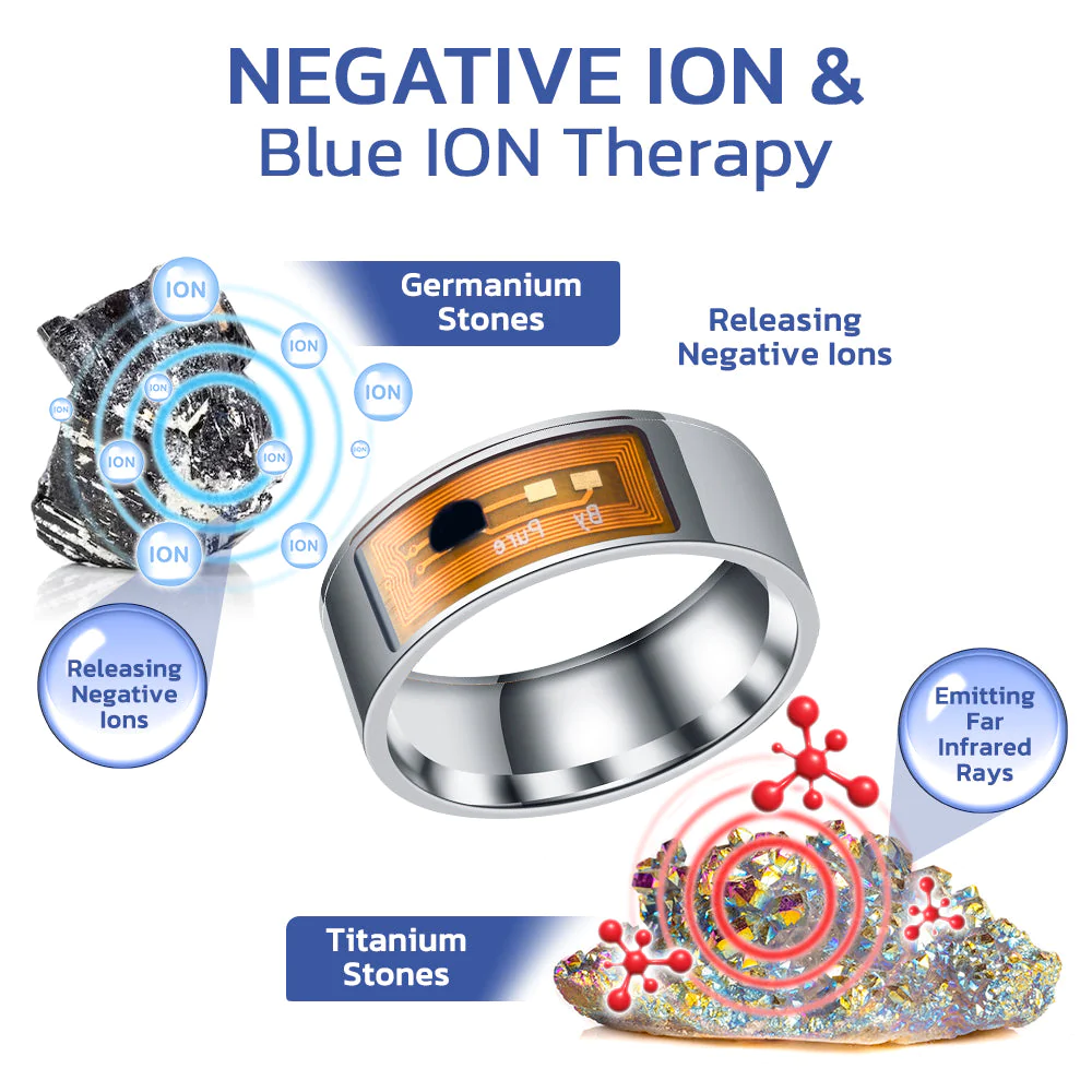 The GFOUK™ HealthBlood Pressure Control Ring functions through two primary mechanisms – Germanium negative ion emission and Blue ION Therapy.
