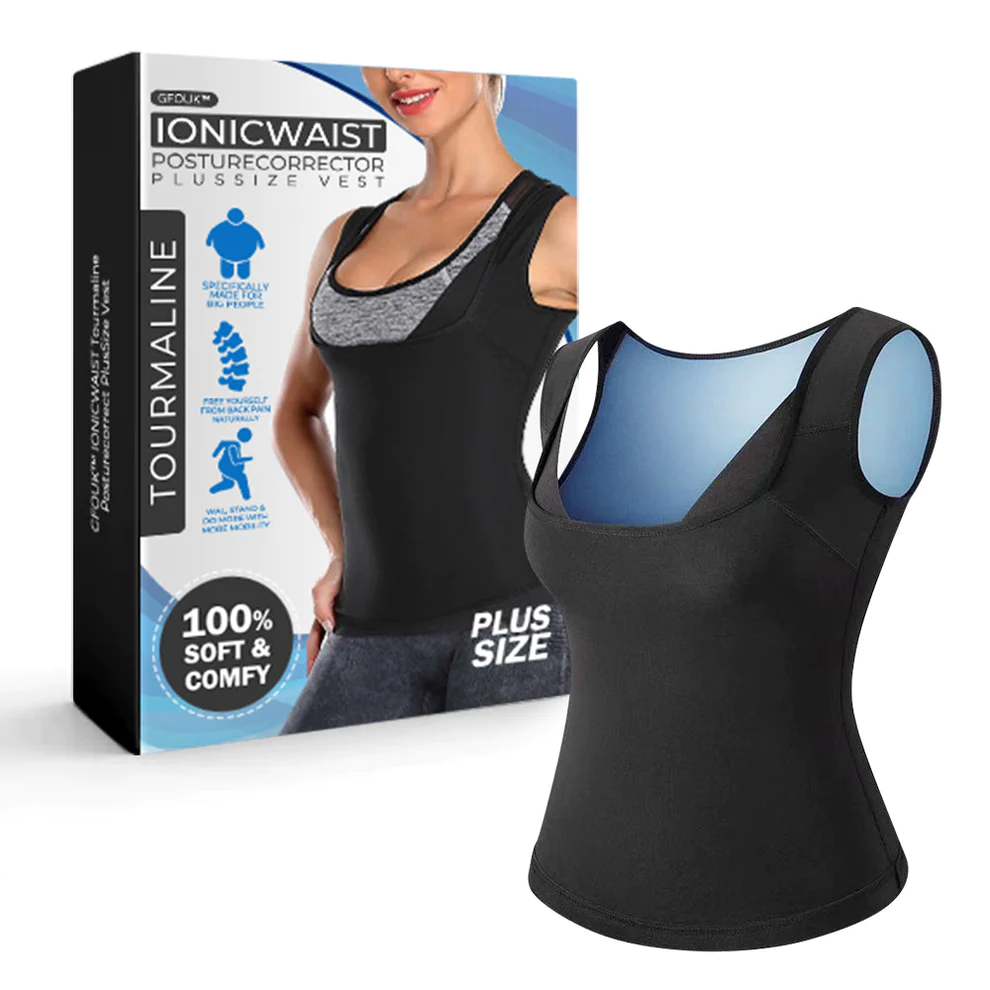 Introducing the GFOUK™ IONICWAIST Tourmaline Posturecorrect PlusSize Vest—a revolutionary garment designed to reshape your body and deliver the coveted hourglass figure you’ve always desired! It is specifically made for big people with wide waists who suffer from back or hip pain and who want to exercise and walk without feeling so limited by their lower back pain. It allows you to be more active and will give you more motivation to exercise because the hip and lower back pain wont be there to stop you.