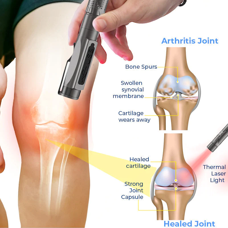 GFOUK™ MedicWave Thermal Laser Joint Care Pen emits low-level light energy, often in the red or near-infrared spectrum. These wavelengths are chosen because they have the ability to penetrate the skin and reach deeper tissues. One of the key benefits of thermal laser therapy is its anti-inflammatory effects. It can help reduce inflammation in the targeted area, which is particularly beneficial for joint conditions associated with inflammation, such as arthritis.