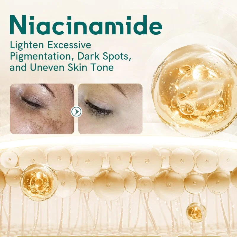 Niacinamide can help fade hyperpigmentation, dark spots, and uneven skin tone. It inhibits the transfer of melanin (the pigment responsible for skin color) to the skin’s surface, leading to a more even and radiant complexion.