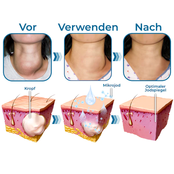 Nach gründlichen Tests, Dr. Adrian hat nachgewiesen dass das in der GFOUK™ Nackenkropf-und Straffungstherapie-Serum kann als nicht-verdauliche Beilage dienen. Dieses Serum deckt den Jodbedarf des Körpers von 150 Mikrogramm, Stimulierung des Lymph- und Blutkreislaufs. Infolgedessen hilft es bei Wiederherstellung des Gleichgewichts der Schilddrüsenhormone in ihrem natürlichen Zustand. Dieser genaue Ansatz das Problem des Kropfes wirksam angeht und beseitigt.