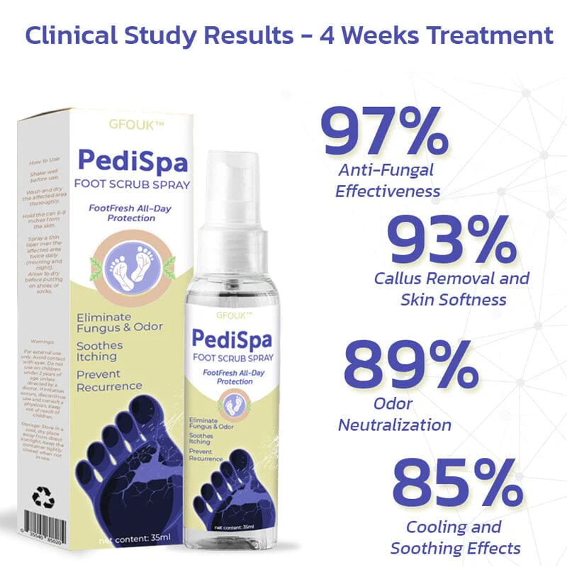 The clinical study results showcase the impressive efficacy of GFOUK™ PediSpa Foot Scrub Spray in tackling a range of foot skin issues, such as dryness, cracks, calluses, odor, and fungal infections. Customers consistently reported notable enhancements in foot health and comfort, establishing it as a reliable option for comprehensive foot care.