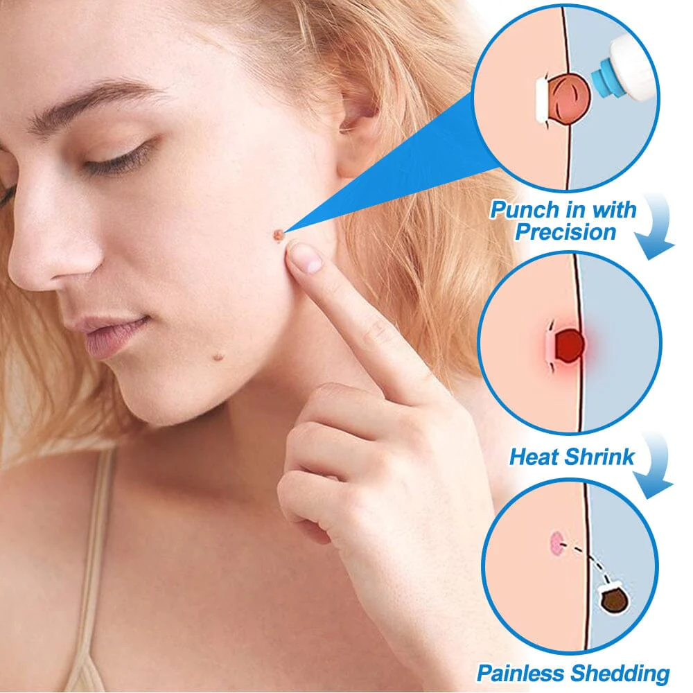 Mash is a herbal ingredient known to be widely used in dermatology to treat a variety of skin conditions, including skin tags and warts, by heating up the active ingredient and slowly spreading it out until it surrounds the mole and heats up to shrink and tighten it until it falls off painlessly.