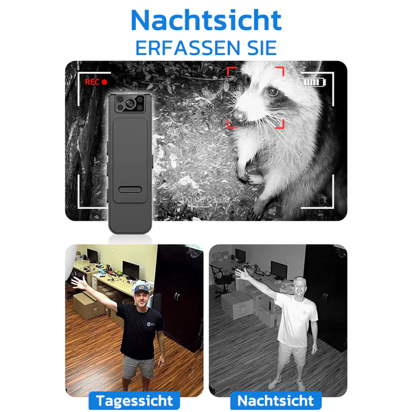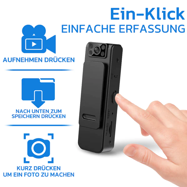 Dieses vielseitige Gerät bietet eine Reihe von Installationsmöglichkeiten, die eine Anpassung an verschiedene Szenarien gewährleisten. Seine magnetische Eigenschaft ermöglicht eine schnelle und mühelose Befestigung an Metalloberflächen, wodurch es perfekt für die diskrete Überwachung oder die Aufzeichnung unterwegs. Ein stabiler Clip sorgt für eine sichere Befestigung an der Kleidung oder an Gegenständen, ideal für Freihändige Aufzeichnung während Meetings, Veranstaltungen oder unterwegs.