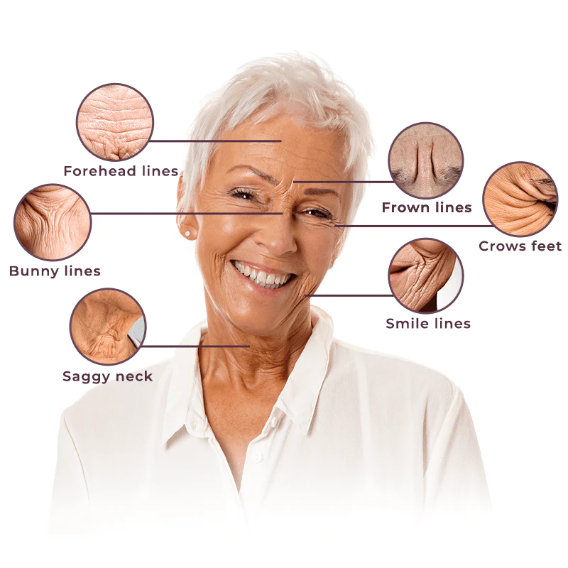 As we get older, our bodies naturally experience a more rapid decline in collagen production. This process leads to accelerated sagging of facial skin, while simultaneously causing a reduction in moisture and elasticity. These factors contribute to the formation of various types of smile lines, including creases and loose skin.