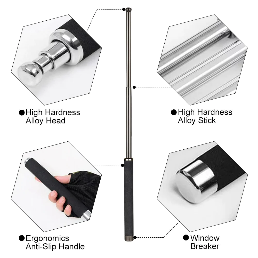 Anti-Slip Grip: To ensure secure operation and control, the GFOUK™ Tactical Self-Defense Baton features an anti-slip grip handle. This functionality is crucial for firmly grasping the self-defense baton in high-stress situations, preventing accidental slips, and ensuring effective tool manipulation during self-defense.