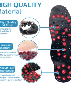 Das Turmalin-Mineral in der Einlegesohle erzeugt negative Ionen, die die Heilung und das Gleichgewicht im Körper fördern und somit der Fußgesundheit zugute kommen. In Kombination mit der Akupressur-Therapie verbessert die Einlegesohle die Blutzirkulation, lindert Schmerzen und Entzündungen und sorgt für allgemeinen Fußkomfort. Die GFOUK™ TitanVein Ferninfrarot-Turmalin-Akupressur-Einlegesohlen bieten eine umfassende Lösung für die Fußgesundheit, indem sie FIR-Technologie, Akupressur-Therapie und strategisch platzierte Akupunkturpunkte, die auf verschiedene Bereiche des Fußes abzielen, kombinieren. Diese Einlegesohle erzeugt Wärme, steigert die Durchblutung und stimuliert die Heilung des Fußes und bietet ein individuelles Akupressur-Erlebnis.