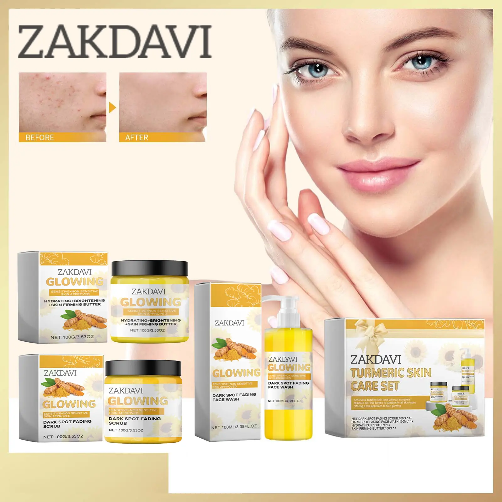- Exfoliation & Deep Pore Cleansing: The turmeric scrub effectively exfoliates, removing dead skin cells and deeply cleansing pores, leaving your skin refreshed and smooth.
