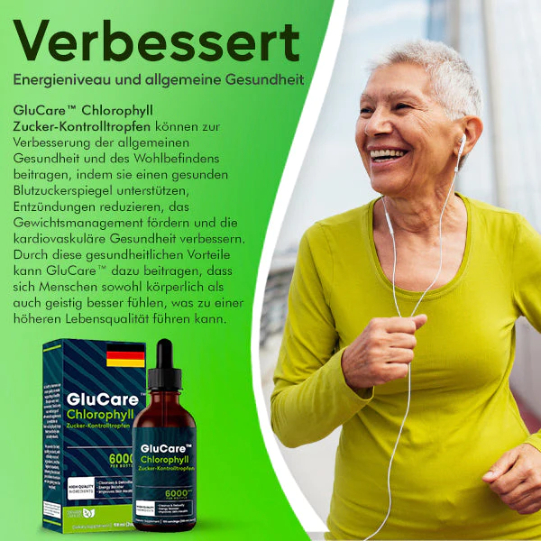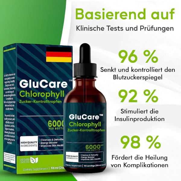 Sind Sie auf der Suche nach einer natürlichen und effektiven Methode zur Unterstützung eines gesunden Blutzuckerspiegels? Dann sind Sie bei GluCare™ Chlorophyll-Zucker-Kontrolltropfen genau richtig! Es besteht aus einer einzigartigen Mischung natürlicher Inhaltsstoffe, darunter Chlorophyll, ein Pflanzenpigment, das für seine zahlreichen gesundheitlichen Vorteile bekannt ist. Chlorophyll hilft nicht nur, die Zellen vor Schäden durch freie Radikale zu schützen, sondern unterstützt auch eine gesunde Insulinempfindlichkeit und einen gesunden Glukosestoffwechsel.