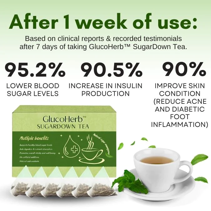 Dr. Emily Roberts, a renowned endocrinologist, highly recommends GlucoHerb™ SugarDown Tea as an effective and natural option for managing high blood sugar levels. According to her, “GlucoHerb™ SugarDown Tea provides a unique blend of herbs that have shown promising results in supporting healthy blood sugar levels. In our recent clinical study conducted on individuals with high blood sugar, individuals who consume GlucoHerb™ showed a significant reduction in fasting blood sugar levels and improved overall glycemic control among participants who consumed the tea regularly. This study highlights the potential benefits of GlucoHerb™ SugarDown Tea in supporting healthy blood sugar regulation.”