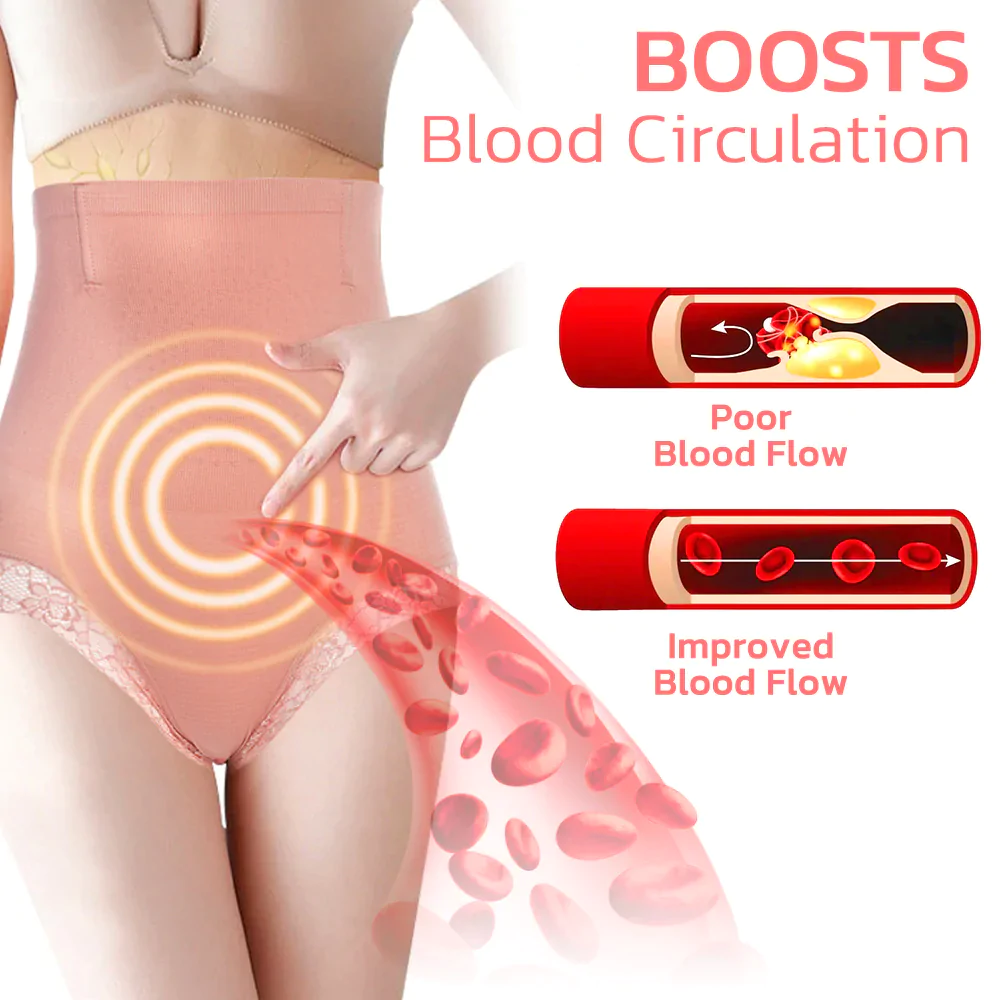 The Graphene Thermal Circulation Tightening Briefs releases natural energy through thermal circulation, improving blood circulation throughout the body and eliminating toxins from the uterus. Together with the graphene (a precious natural mineral) in the middle of the panties, infrared heat is absorbed by cells, causing a physical phenomenon called “resonance”. Thus the cellular activities are instantly invigorated, resulting in better blood circulation and overall improved metabolism. Improves various gynecological diseases, reduces body fat and lifts the buttocks.