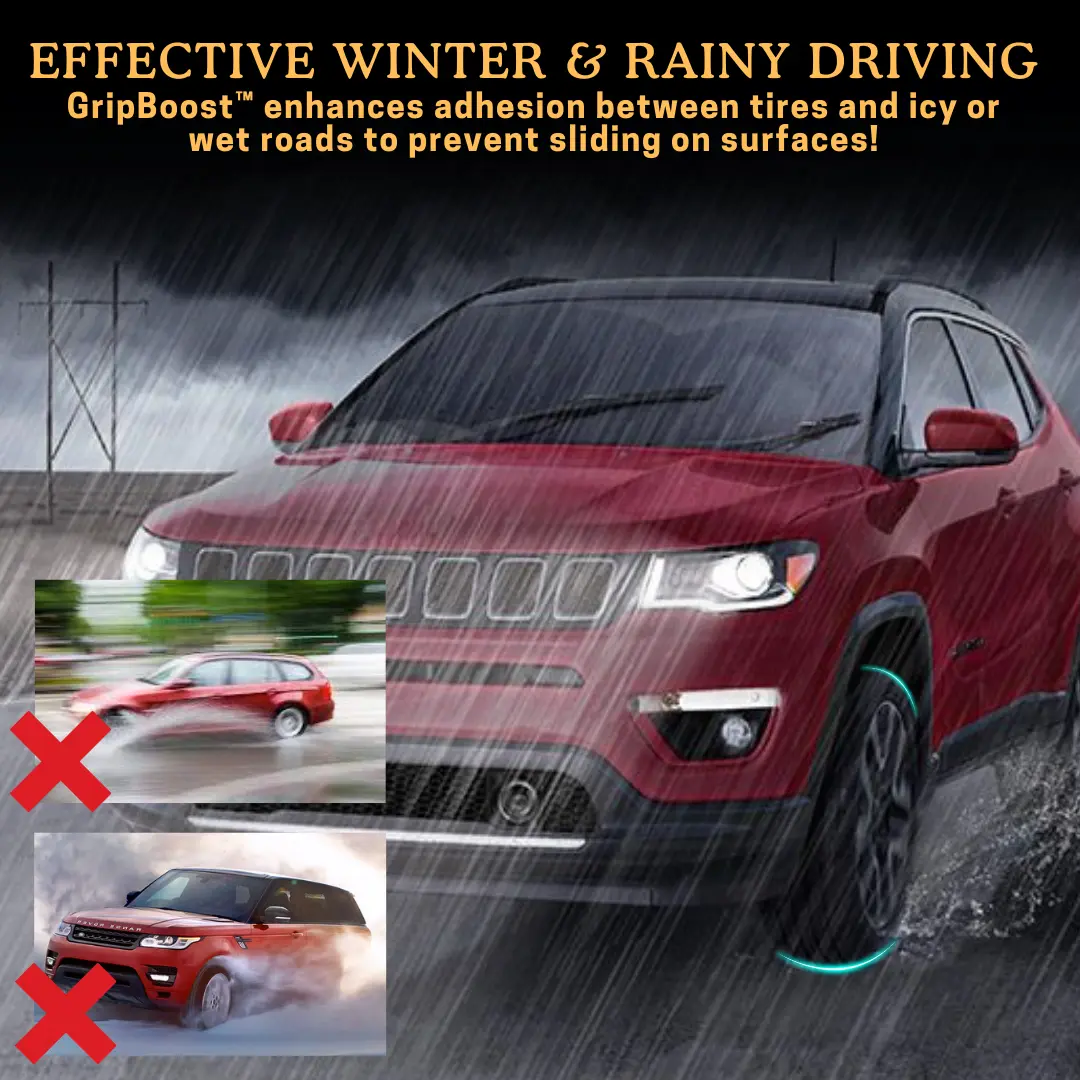 - Peace of Mind: By reducing the chances of accidents and skidding, GripBoost™ instills a sense of confidence and peace of mind for drivers navigating the roads. It serves as a proactive measure to enhance safety and mitigate the inherent risks associated with winter or rainy driving.