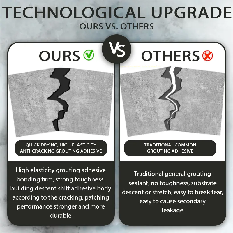 GroutLock™ Waterproof Multifunctional Grouting Adhesive offers high elasticity for strong bonding and exceptional toughness ensuring a more durable repair. Its quick-drying formula sets in just 5 minutes allowing for fast and efficient fixes. This combination of strength and speed makes it the perfect solution for long-lasting repairs.