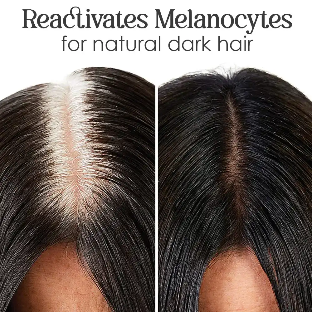 It does this by protecting melanocytes. Grey hair is caused by the premature death of melanocytes, and Polygonum Multiflorum helps prevent that from happening, keeping hair darker for longer. It’s also capable of hair regeneration and hair growth by promoting blood circulation in the scalp. More blood flow means your scalp and follicles get more nutrients to produce longer, stronger, and darker hair.