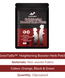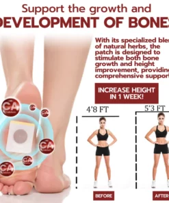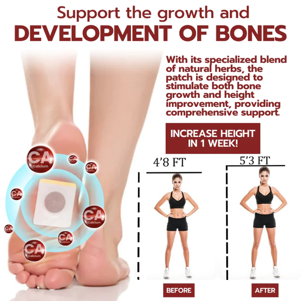 With precision and care, the GrowTallix™️ Heightening Booster Herb Patch is meticulously designed to promote bone growth and height enhancement. Harnessing the power of a unique blend of natural ingredients, these patches collaborate with improved blood circulation to transport essential nutrients and oxygen to the bones, nurturing their growth and development. Prioritizing bone health, these patches are crucial in optimizing height potential and ensuring overall skeletal well-being.