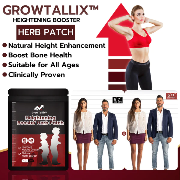 Presenting the groundbreaking GrowTallix™️ Heightening Booster Herb Patch – an innovative remedy engineered to support bone health and elevate height possibilities. Carefully formulated with a distinct fusion of natural elements and fortified with calcium, this patch delivers focused advantages to foster ideal bone development and overall skeletal health.