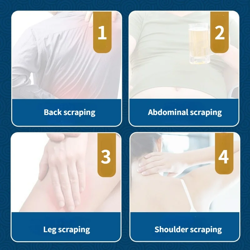 For the back: First use the concave surface from top to bottom, each time in the same direction. Then use the convex surface to scrape the spine.