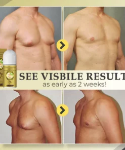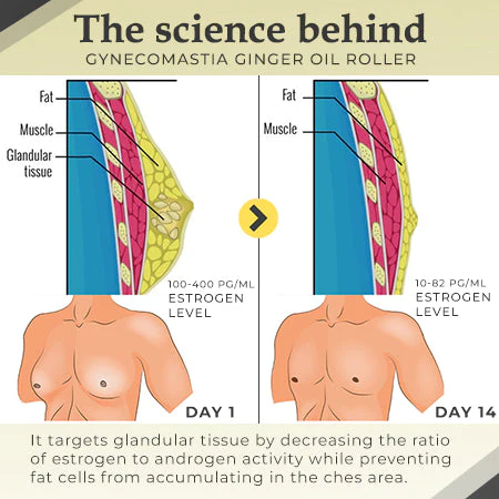 Gynecomastia Ginger Oil Roller targets glandular tissue by decreasing the ratio of estrogen to androgen activity. It also warms up the fatty tissues under your skin to facilitate a more effective reduction of gynecomastia while preventing fat cells from building up in your chest area in the future!