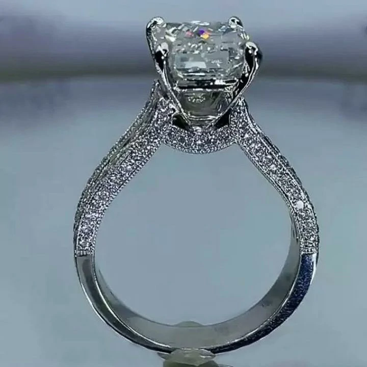 Handmade Radiant Cut White Sapphire 925 Sterling Silver Engagement Ring